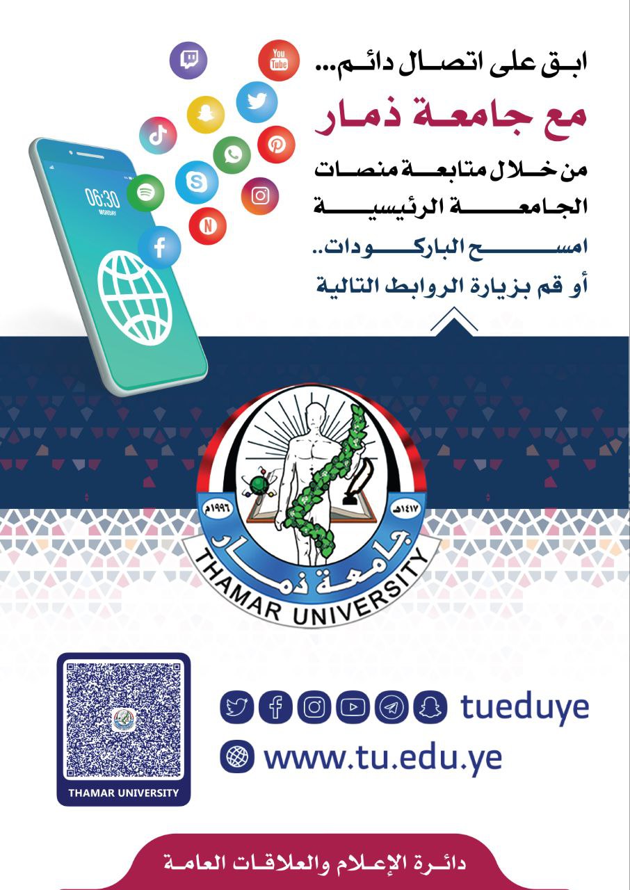 Thamar University is a governmental University and was established on 24th of Aug.1996. It is located at Dhamar city, Yemen. It was established to provide scientific research and community services at the local, regional and international levels. The number of students enrolled in the university are more than twenty thousand. The University includes many faculties with various specialties and study fields.